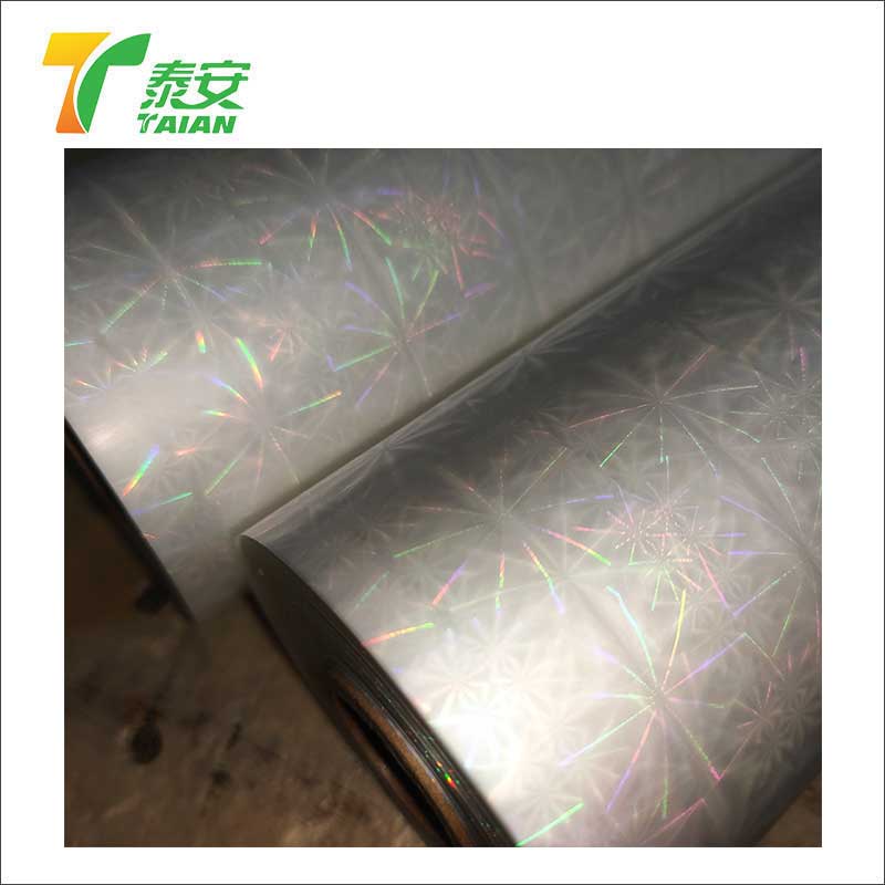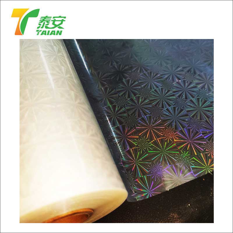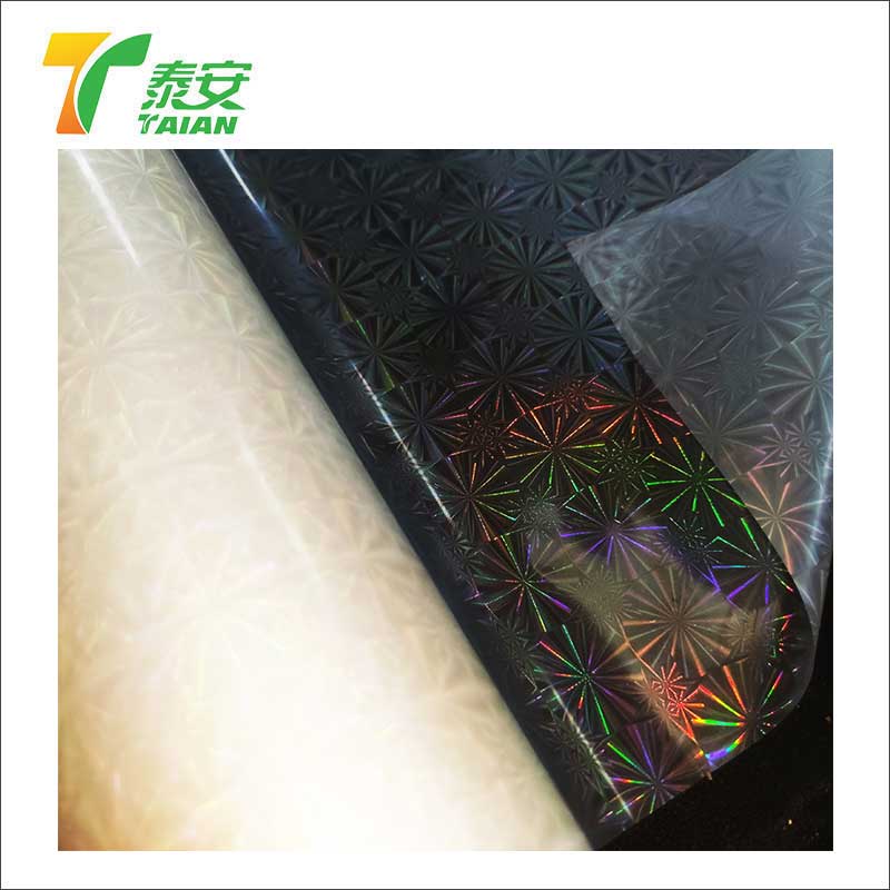 O filme holográfico de laminação térmica tem um alto brilho, e a camada a laser doa o filme com melhor adaptabilidade antistática e alta à imprensa.